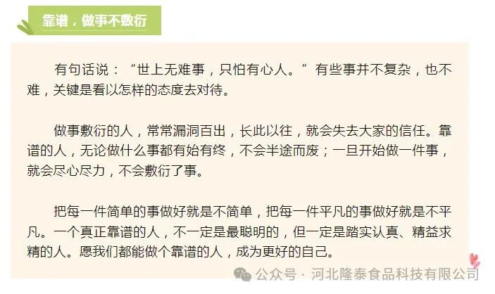 企業(yè)亦是如此,隆泰公司始終如一的秉持“誠(chéng)信、敬業(yè)、創(chuàng)新,發(fā)展”的經(jīng)營(yíng)理念,致力于食品風(fēng)味、滋味研究,以高度的專業(yè)化、職業(yè)化為顧客提供增值服務(wù)。堅(jiān)持“視產(chǎn)品質(zhì)量為企業(yè)的生命,欺騙顧客等于欺騙自己”的質(zhì)量理念,成為了國(guó)內(nèi)咸味食品香精、符合調(diào)味品行業(yè)的知名企業(yè)。